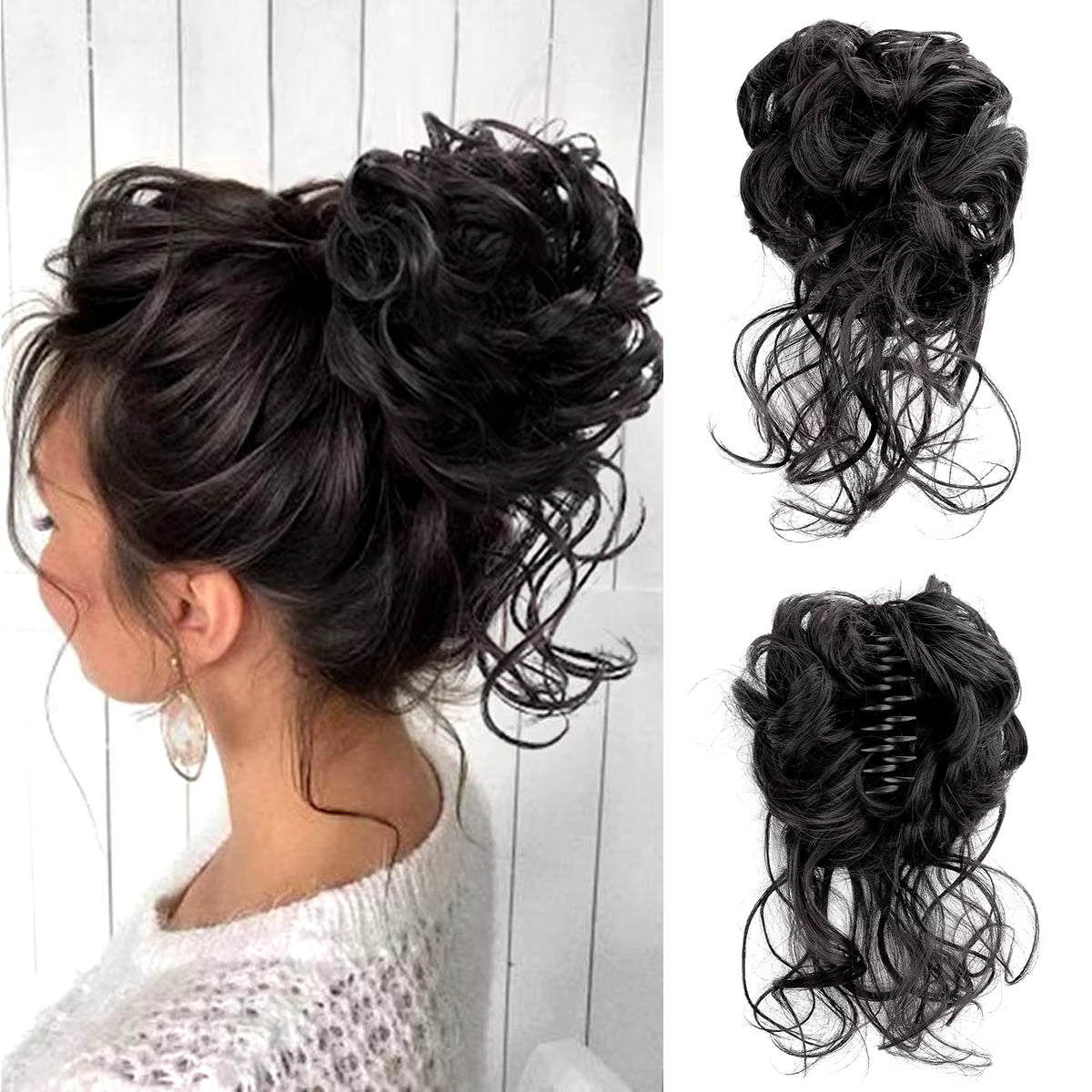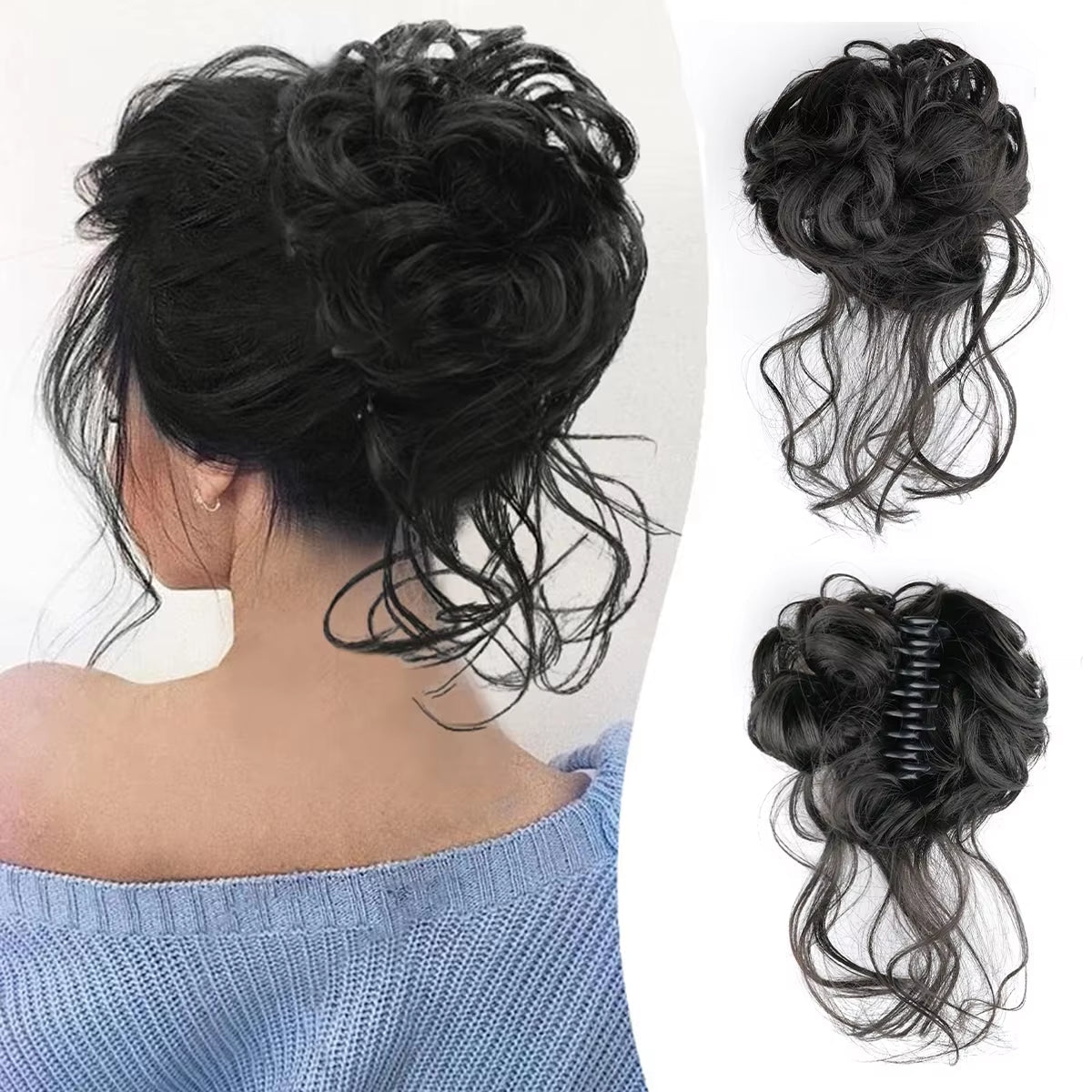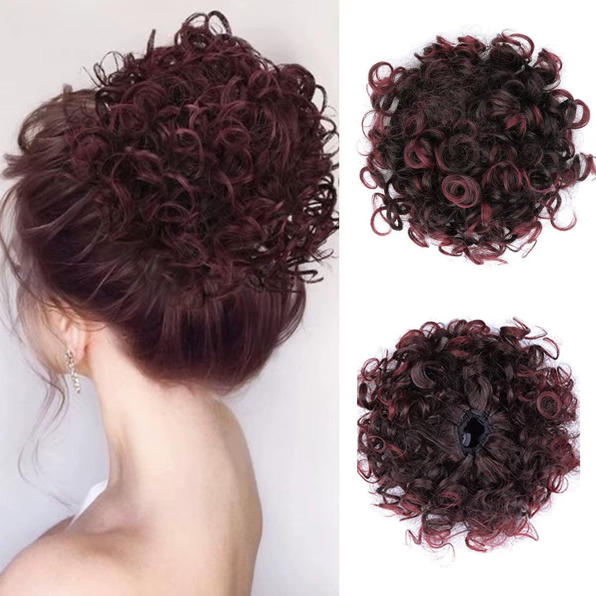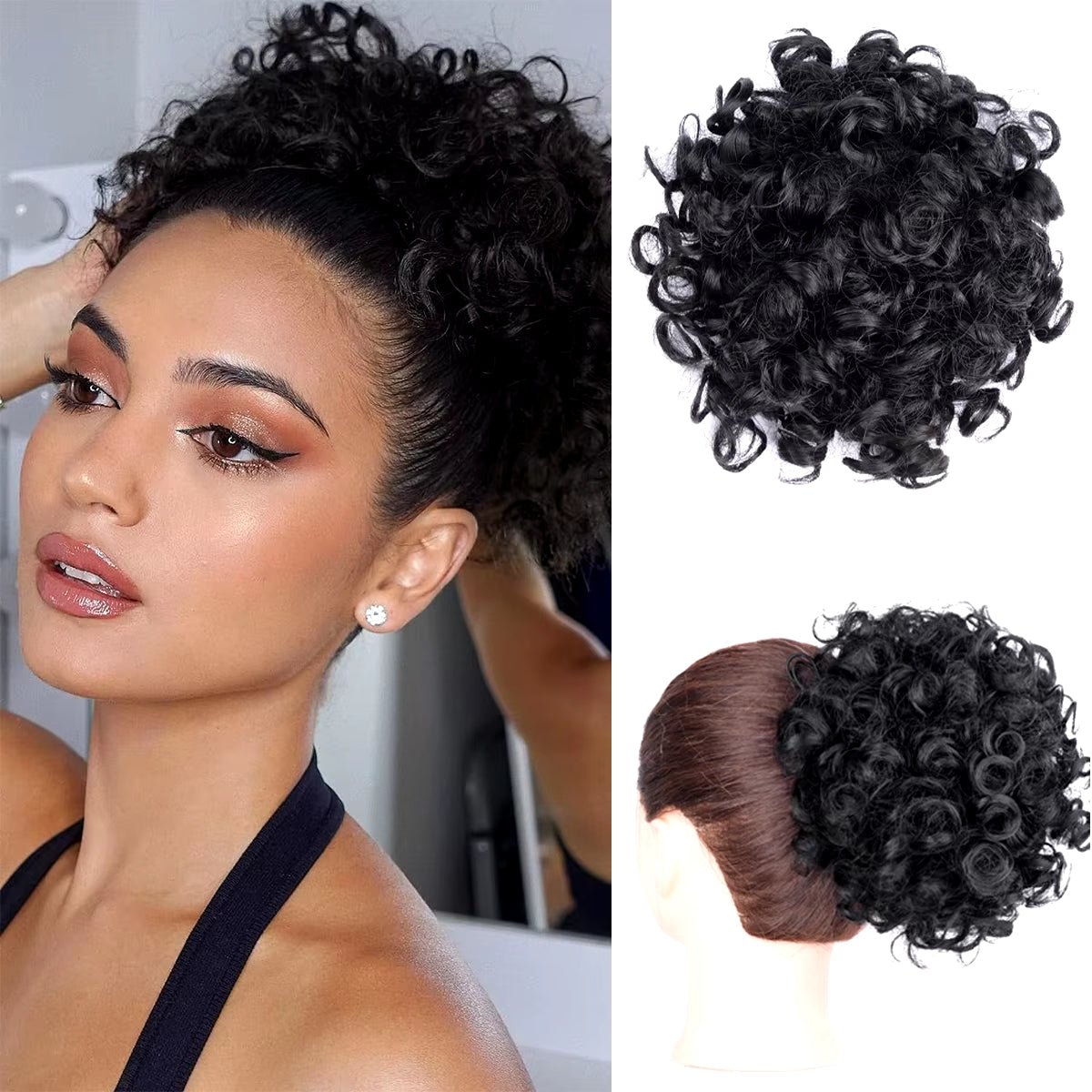 Curly Fluffy Hair Bun Clip in Ponytail Hair Extensions Natural False Hairpieces