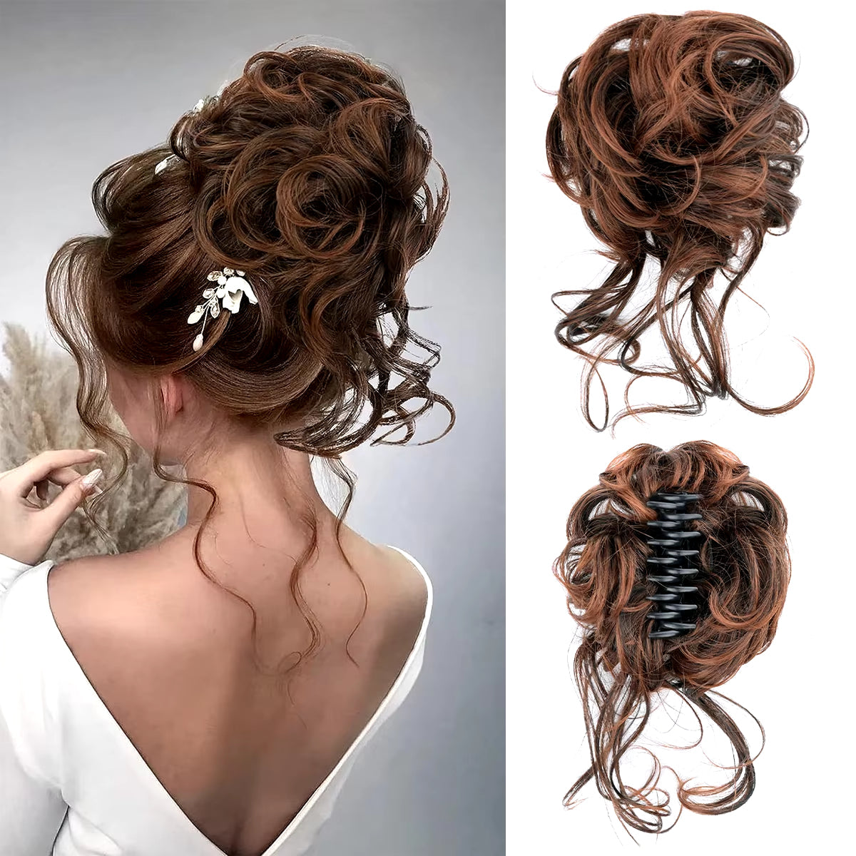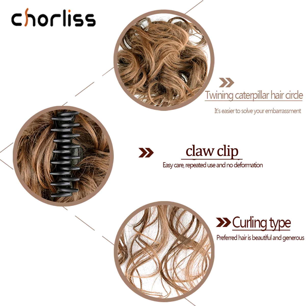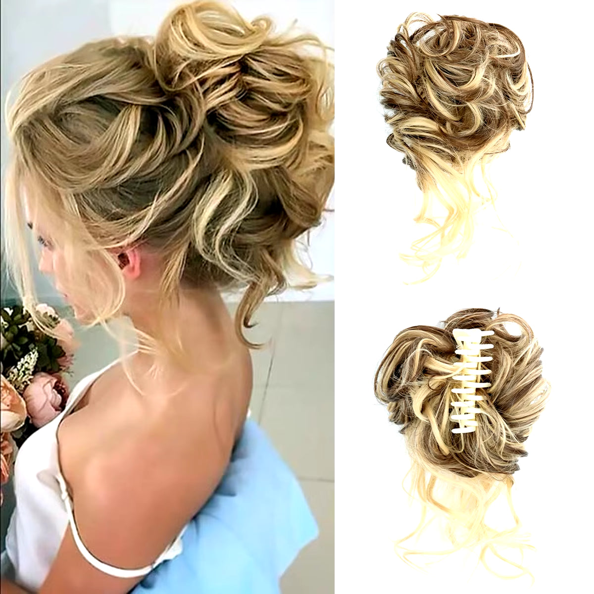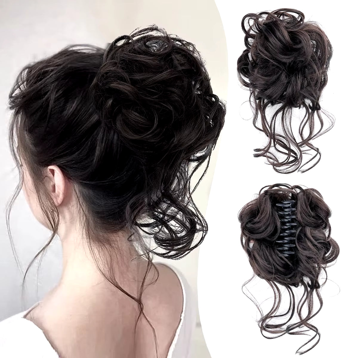Curly Fluffy Hair Bun Clip in Ponytail Hair Extensions Natural False Hairpieces