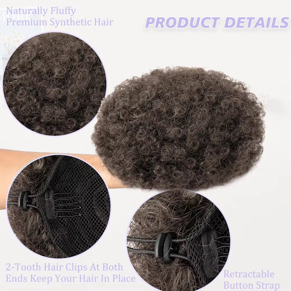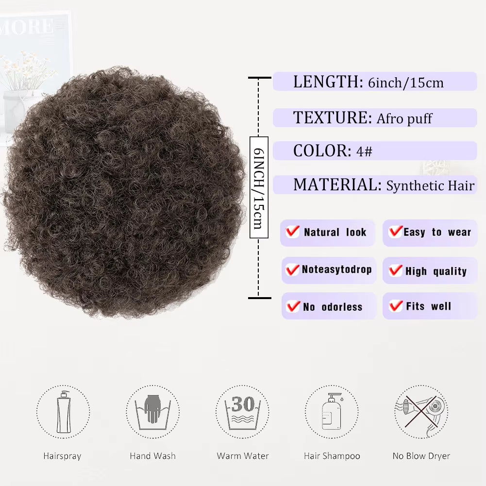 Black Short Synthetic Afro Puff Ponytail for Natural Hair