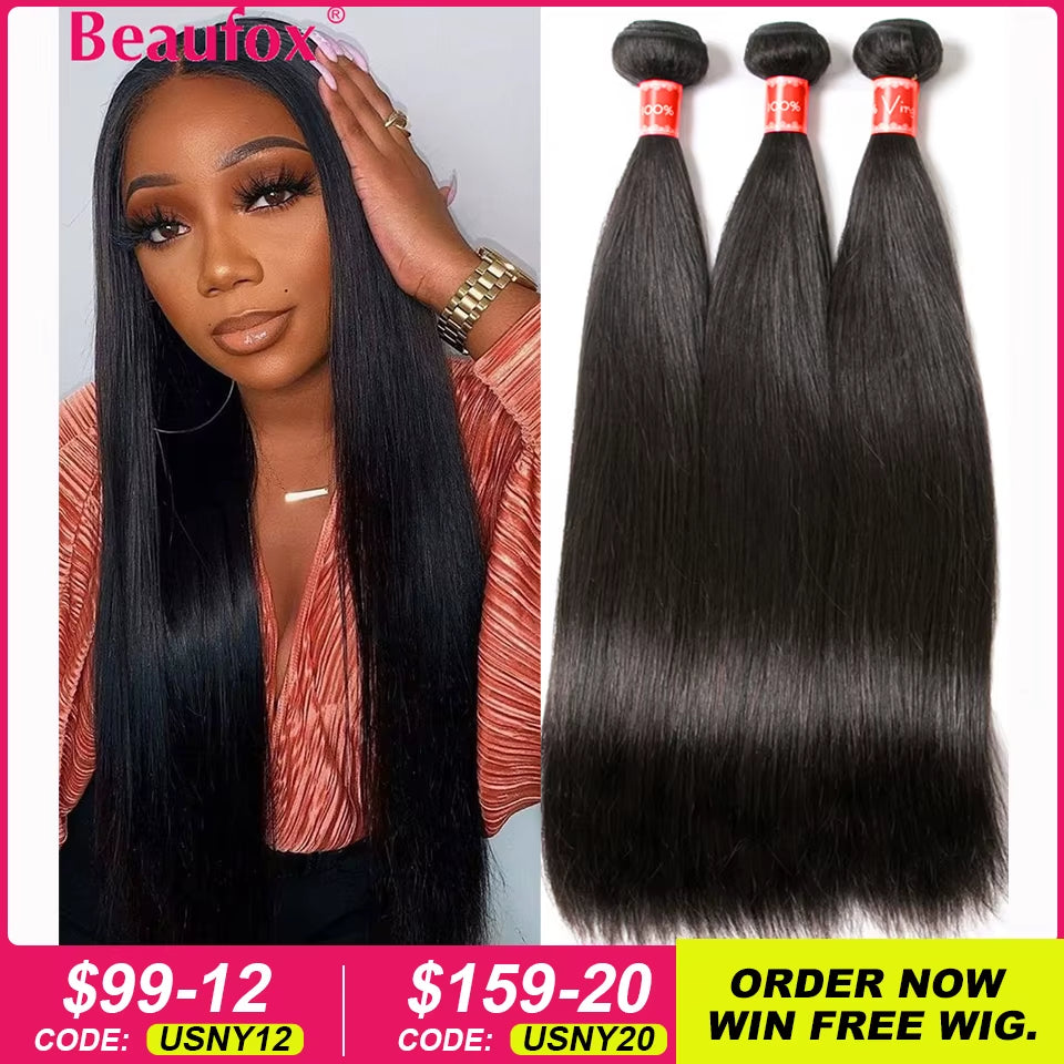 Beaufox Peruvian Hair Bundles Straight Human Hair Weave Bundles Remy Hair Extension Natural 1/3/4 Pcs 8-28 Inches